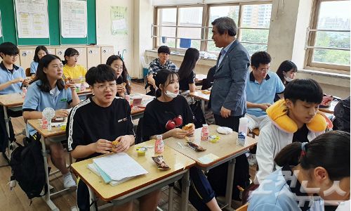 3일 광주 대자중학교 학생들이 도넛과 우유 등으로 대체급식을 실시하고 있다.(사진=광주광역시교육청 제공)